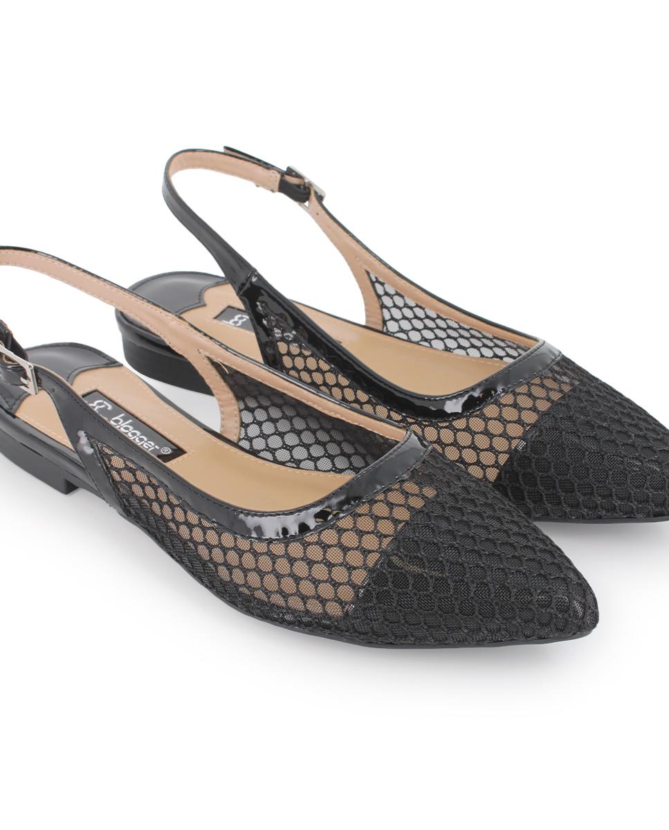 Bailarinas con efecto de red en material sintético negro