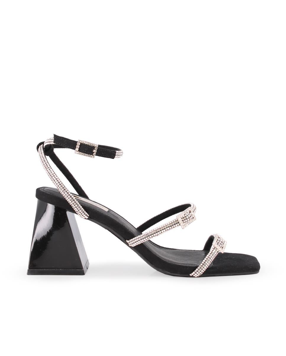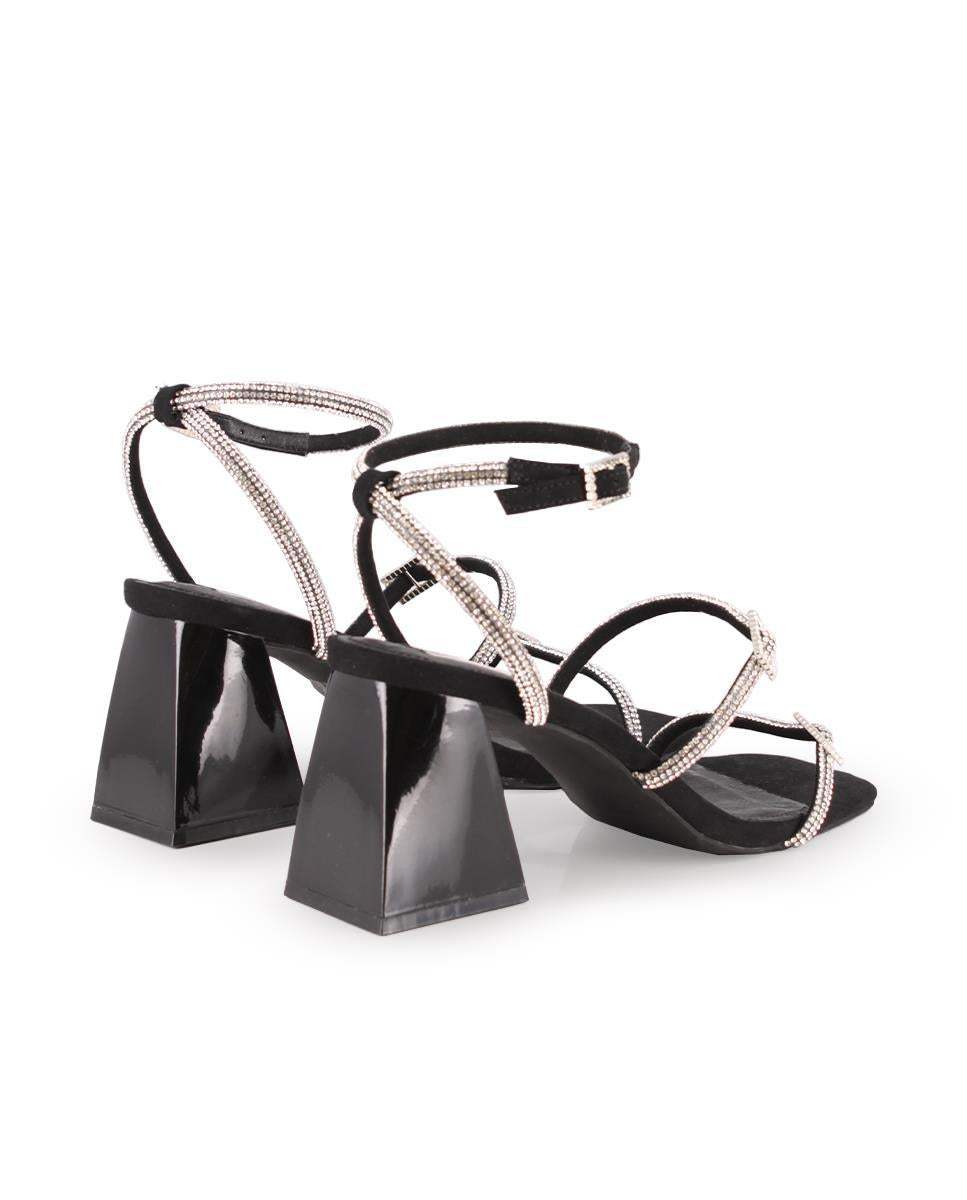 Sandalias en material sintético negro con pedrería
