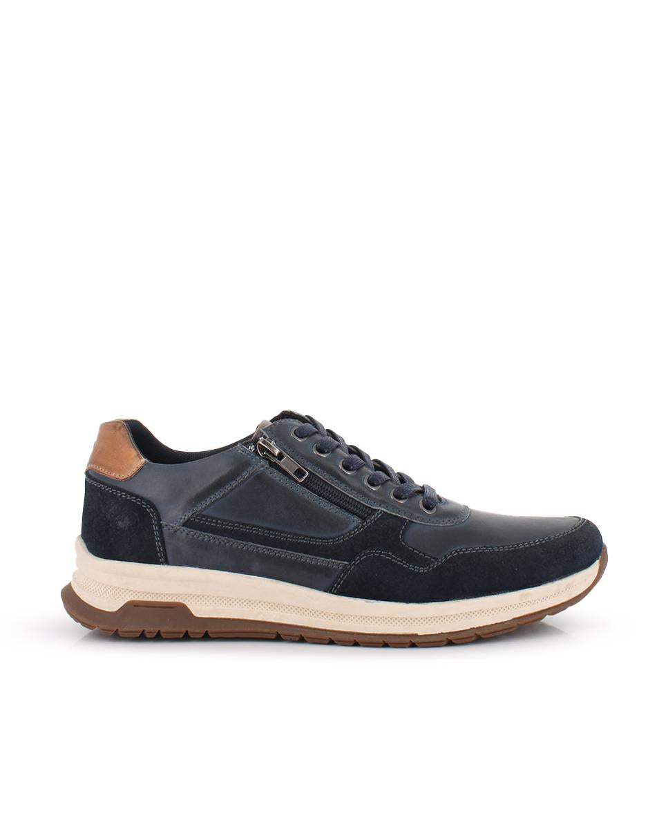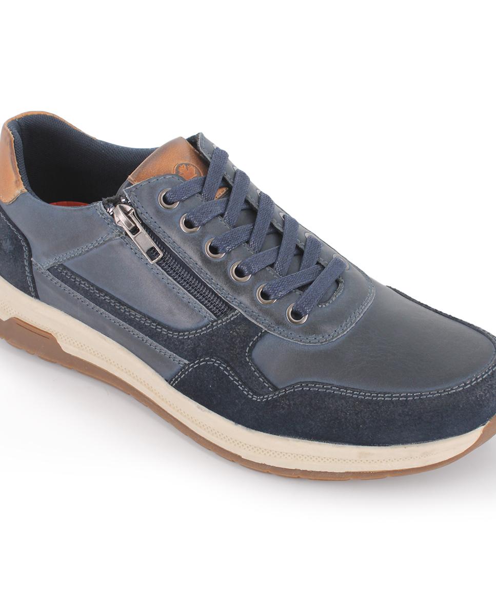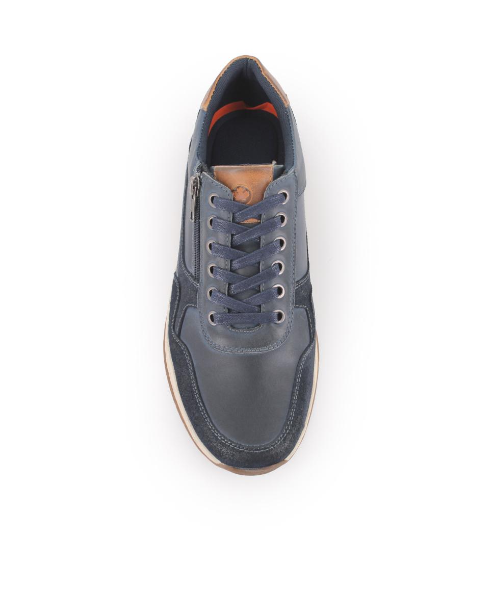 Zapatos en piel color azul marino con detalles en serraje