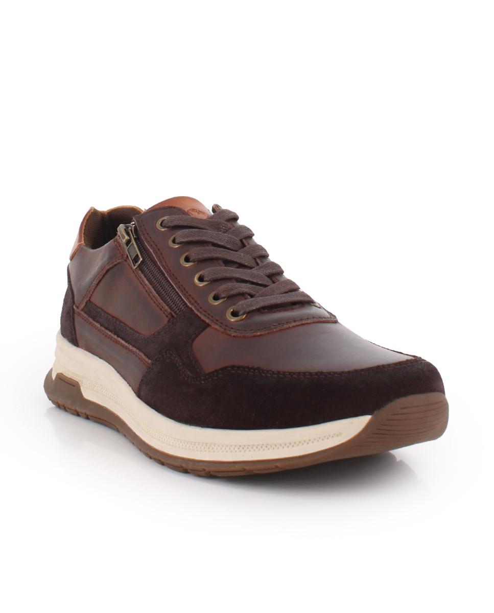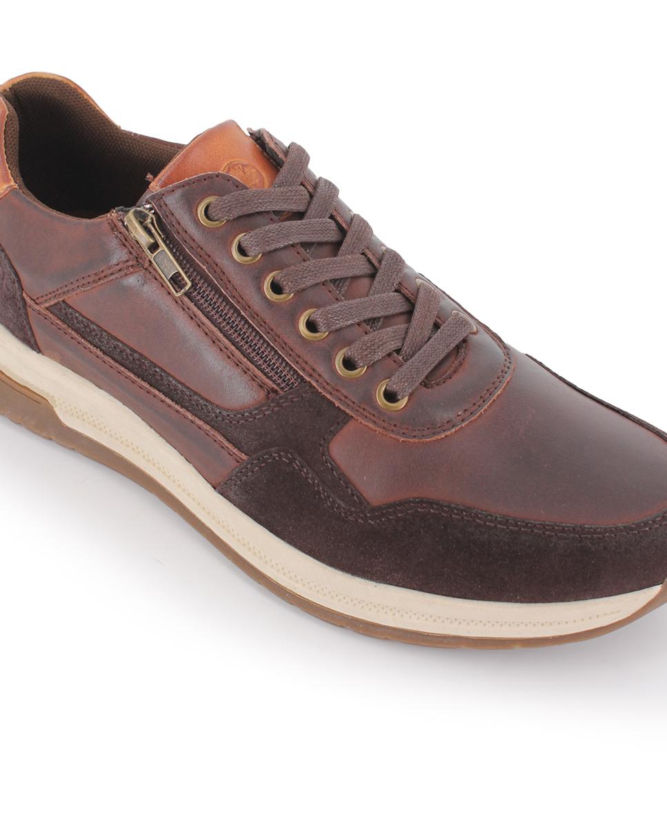 Zapatos en piel color marrón con detalles en serraje